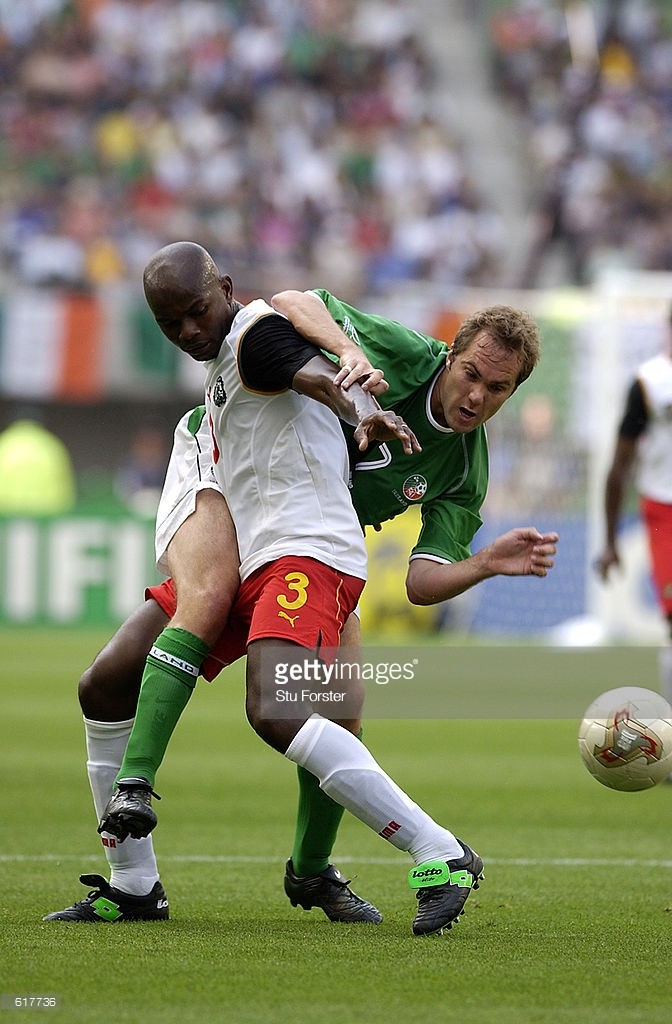 2002年大部分球员使用的都是tigreor,但也有球员使用testimonial,当时的testimonial logo比较奇怪。爱尔兰队长斯汤顿用的这个,虽然涂黑了,但还是能看出来。