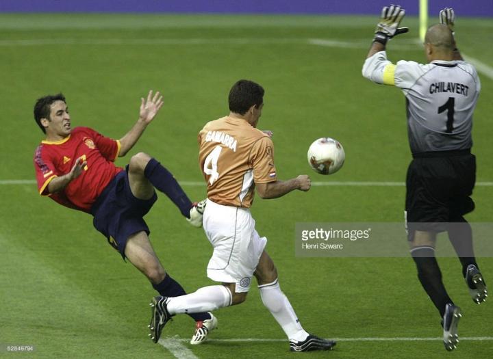我早就怀疑过巴拉圭球员穿日系足球鞋,在2002年终于得到了证实,而且还不止一个,门将奇拉维特,穿的是和日本国门酋崎正刚一样的日产袋鼠皮蹴道。在训练中,奇拉维特更是穿的日产红色鞋钉para mexico,中山雅史专属……1998年世界杯的鞋。