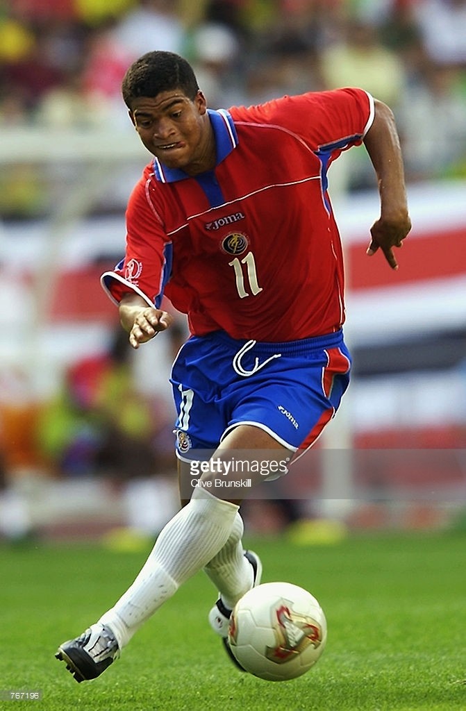 接下来的下就开始逐步小众了,在2002年一众越来越少的情况下,joma足球鞋到有点像黑马,居然有来自三个国家的三位球员使用,最大牌的是西班牙的莫伦特斯,最小牌的是哥斯达黎加的卡斯特罗,他们使用鞋子应该是同款,不同配色。
