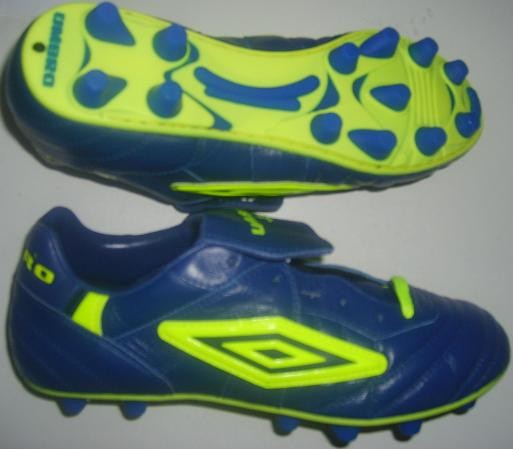 英国老牌umbro,在2002年世界杯上,发布了全新的xai 2代足球鞋,虽然和一代很像,但是2代侧面的4条白杠还是非常明显。这款鞋的制作工艺复杂,成本很高,也是意大利产,英格兰队的欧文和瓦塞尔穿的都是这款鞋,瑞典的拉尔森和意大利的赞布罗塔,都是这款鞋的代言人。