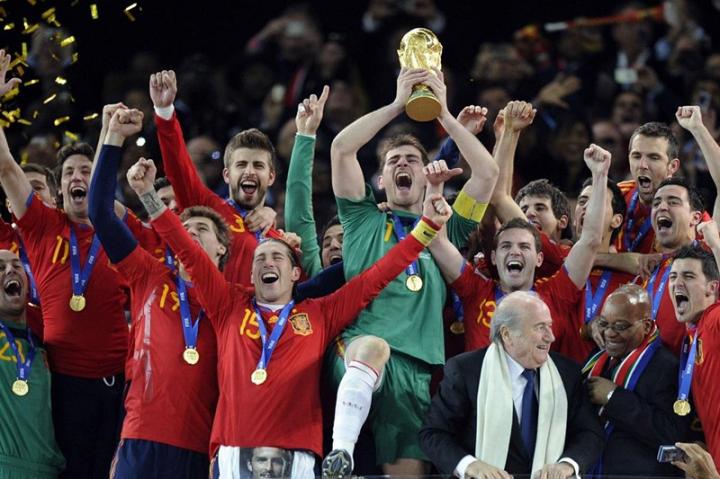 2010年世界杯决赛阶段的比赛依然是西班牙的天下,拥有哈维、伊涅斯塔、比利亚、普约尔等众多超级巨星的斗牛士们再次向世人展示了他们华丽的传控流打法,最终他们在决赛凭借小白的绝杀拿到队史首个世界冠军,也彻底摘下了无冕之王的头衔,这也是欧洲球队第一次在其他洲举办的世界杯中夺冠。