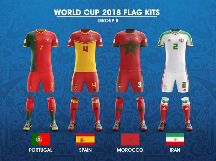 B组:葡萄牙 西班牙 摩洛哥 伊朗