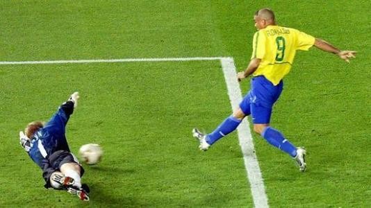 阿福头的罗纳尔多决赛两次攻克狮王卡恩把手的大门,既让巴西夺得了世界杯,本人也拿走了金靴。