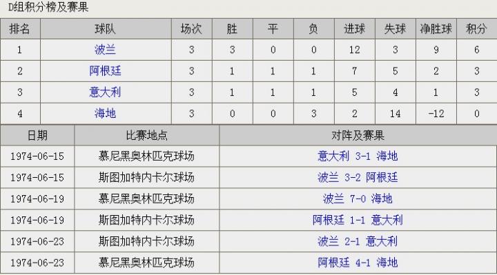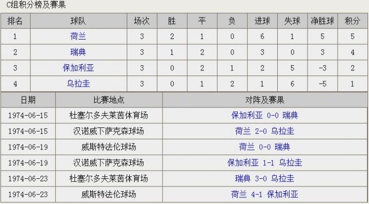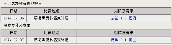 1974年德国世界杯比赛结果统计