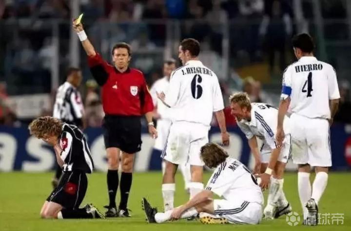 02-03赛季的欧冠半决赛,尤文图斯在自己的主场都灵阿尔卑球场迎战皇马。首回合尤文1-2告负,但在主场3-1获胜翻盘成功。第73分钟时,内德维德用速度甩开耶罗和萨尔加多打进尤文图斯的第3球,帮助斑马军团3-0领先!不过内德维德随后遇到了重大打击,捷克人毫无必要地对麦克马纳曼铲球犯规领到黄牌,他因为累积黄牌无缘欧冠决赛。内德维德双膝跪地,双手掩面,为自己的冲动之举感到后悔。比赛结束后,捷克铁人在一片欢声中独自落泪。