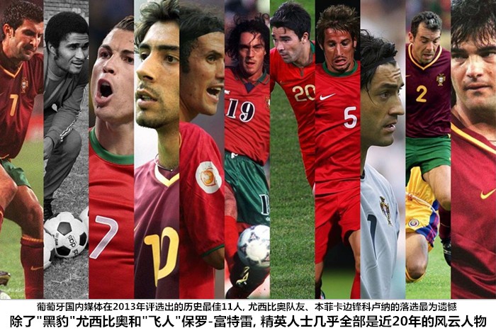 葡萄牙在历史上曾六次跻身世界杯正赛,他们首次参赛便在“黑豹”尤西比奥的带领下取得了1966年世界杯的季军。二十年后,葡萄牙队重返世界杯舞台,他们在首场比赛中1比0力克实力强大的英格兰队,不过,他们在随后的两场比赛中先后输给了波兰和摩洛哥,未能晋级淘汰赛。黄金一代的巅峰期出现在了2000年欧洲杯上,这距离他们进入大众视野已经过去了超过10年,头顶光环的他们在整个上世纪90年代碌碌无为,葡萄牙连续错过了1990年、1994年和1998年三届大赛,1996欧洲杯的八强是仅有的遮羞布。