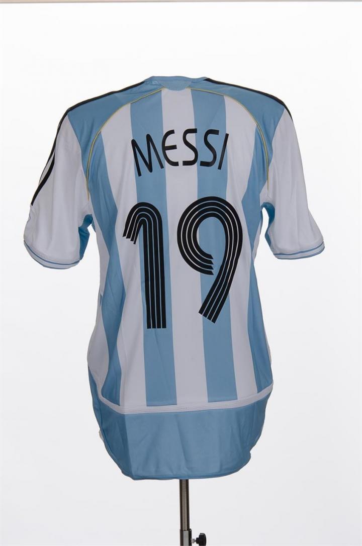 ▲世界足球博物馆收录了2006年世界杯梅西身穿的阿根廷队19号球衣。