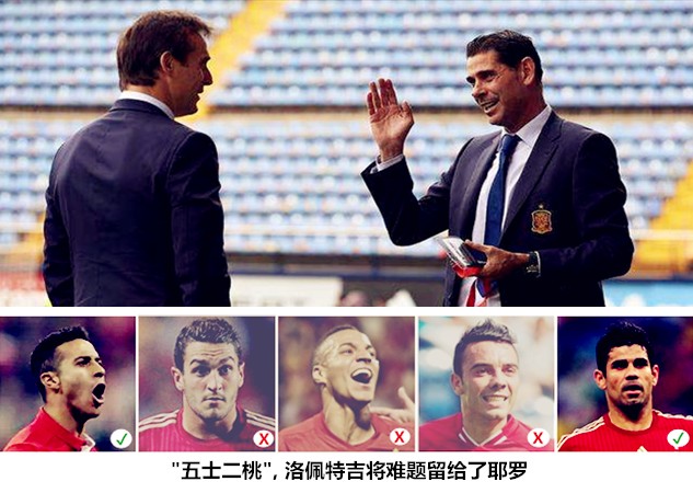 早在对阵德国和阿根廷的热身赛结束之后,洛佩特吉就基本确定了国家队的首发阵容,包括迭戈-科斯塔和伊斯科在内的10名球员主力位置不可动摇。唯一的变数就是伊涅斯塔和布斯克茨的中场搭档——蒂亚戈更加适合传控,科克能够带来平衡,两大候选人适合不同风格的战术体系。洛佩特吉从博斯克时代后期的连续失败中总结出的最宝贵经验,就是西班牙已经不具备“一招鲜吃遍天”的能力,必须具备掌握更多的战术元素才能更好地应付不同风格的对手,他在推崇传控的同时也在提升球队的防反能力。蒂亚戈和科克分属不同的战术体系,两人之间的竞争体现了洛佩特吉内心深处的犹豫和挣扎。作为救火队员的耶罗显然不会大幅度改变前任的战术架构,但他可以通过局部微调为球队施加个人影响,做好蒂亚戈or科克这道选择题就是第一步。