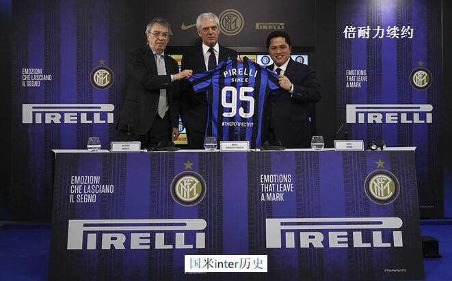 1995年6月14日,国际米兰主席莫拉蒂和倍耐力总裁特隆凯蒂签下了球衣胸前广告赞助合同,这次牵手至今不知不觉已经整整23年过去了,倍耐力已经成为国际米兰不可分割的一部分。