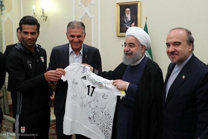 足球,尤其是男子国家队,对于这样一个国家来说,通常是一个难得的好消息。近40年来,伊朗一直都是受到美国等国家孤立的国际社会“弃儿”,他们的经济发展和公民社会也因此有一定程度的萎缩。所以,这个国家的总统想要表彰他们在2018年俄罗斯世界杯预选赛上的表现,他们是继俄罗斯和巴西之后第三支获取晋级资格球队。“能够在这里接待你们是我的期望,”鲁哈尼总统对着国家队成员说,“作为人民的代表,我要向你们表示祝贺。”