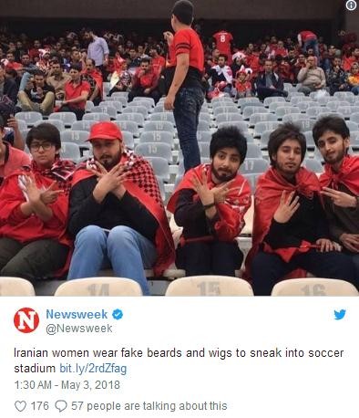 不过,这里至少有一个小而重要的成功。当波斯波利斯回到阿扎迪球场参加赛季的最后一场比赛并开自己的冠军派对时,在人群中出现的不仅仅是男人。在一幅照片中,五名身穿红色衣服、戴着假发、假胡子的女性也出现在了看台上,这张照片在网上疯传。