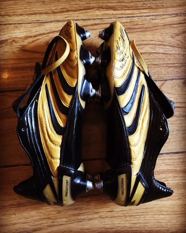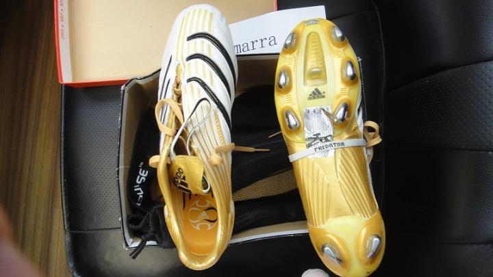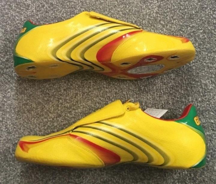 接下来说经典色,经典色猎鹰8,从来就是很多大师级球员的选择,比较著名的黑鞋爱好者,最著名是齐达内。不过在这届世界杯,齐达内被adidas给予特殊照顾,adidas为他定做了金色的猎鹰8足球鞋,可惜adidas的好意齐达内没有接茬,一头撞出了世界杯决赛的赛场。