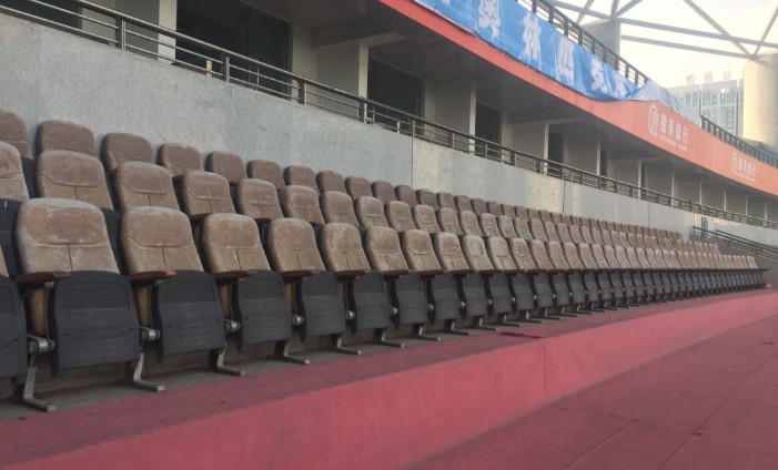 主席台上的软座椅在风吹日晒下,已经破败不堪,早没有当年的光彩。