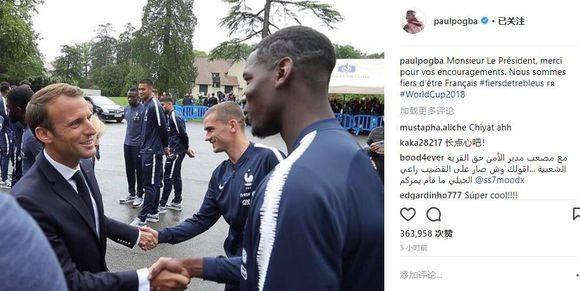 法国队出征俄罗斯之前,马克龙特意探望了国家队。他与博格巴的握手,让后者倍感殊荣。“总统先生,谢谢您的鼓励!作为法国人,我们很自豪能为国出征。”随后博格巴在社交媒体上晒出两人握手照片并写到。
