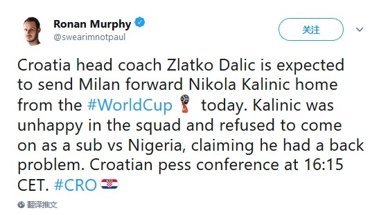 世界杯有惊喜,有惊吓,有意外,也有突发。比如克罗地亚突发米兰前锋卡利尼奇因为与主教练矛盾被直接逐出克罗地亚国家队。