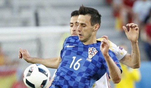 (图)卡利尼奇在克罗地亚国家队最高光的时刻就是在两年前欧洲杯上战胜西班牙时打进一球