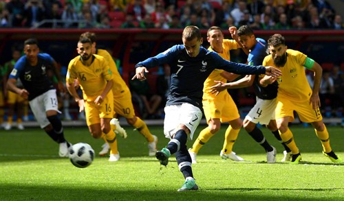 面对防守硬朗的澳大利亚,法国同样也是格列兹曼用点球打开局面,如果不是乌姆蒂蒂低级手球让澳大利亚点球扳平比分,预计法国队之后的进攻一定会收获大比分,因为澳大利亚的铁桶防守已经因为要追平比分而动摇了。