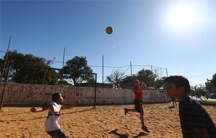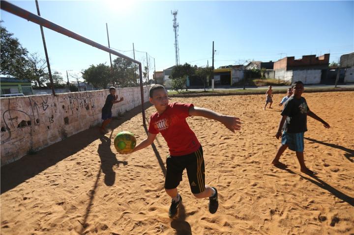 在”足球王国“巴西报道一届世界杯,鲍泰良最深切的感受是这里的足球氛围和随处可见的足球场。坐着车在街头,隔几分钟就能看到一块足球场。许多场地都还是不错的,尤其是市中心的球场的设施会更好。有些是在海边,有些是草坪,还有的可能就是简单的沙地。毫不夸张地说,每个街口可能都有踢球的地方,这些人群,年龄不同,但能在一起享受这样的欢乐。甚至在楼顶上都有球网,远远望去就看到有人在踢球,沙滩上也是不管男男女女都在踢球。在巴西期间,鲍泰良和同事们居住的小区里只有几十户人家,却自带一个球场。每天上午,记者和外国朋友们会在那里踢球。虽然没有草皮,只是土地,虽然小区连停车位都很紧张,但还是会为足球留下一块地方。