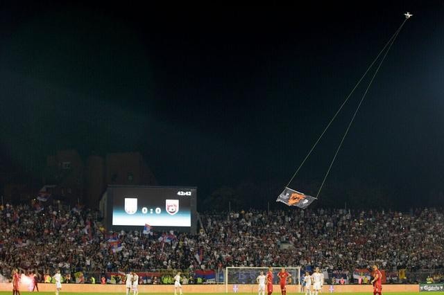 当然,塞尔维亚与阿尔巴尼亚两国在政治方面的摩擦,也早已蔓延到了足球领域。2014年10月14日,两队在塞尔维亚主场交锋,比赛过程中一架悬挂与科索沃有关政治标语的无人机飞入球场,双方球员因此发生激烈冲突,比赛随后中断,欧足联判定阿尔巴尼亚3:0获胜。