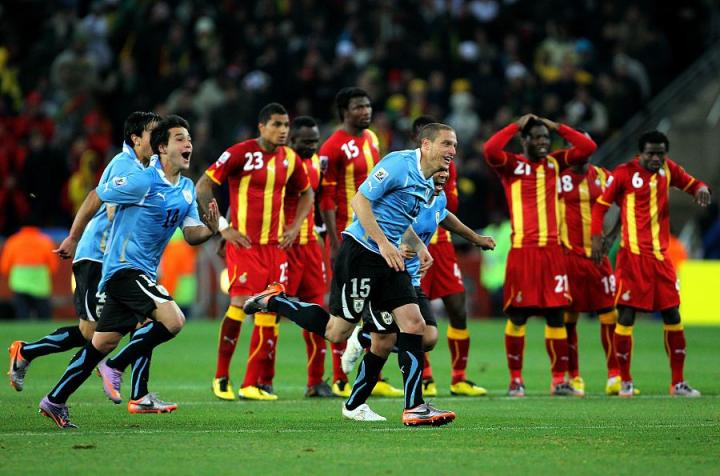 随后比赛进入点球大战,最后时刻点球罚失对这支加纳队造成了不小的心理影响,他们的点球接连被穆斯莱拉扑出。随着阿布鲁勺子点球罚进,乌拉圭5-3(点球比分4-2)战胜加纳。地狱到天堂,南美劲旅就这样戏剧性地逆境重生,进入四强,而加纳在这场充满戏剧性的比赛中成了不得不吞下苦果的背景板。
