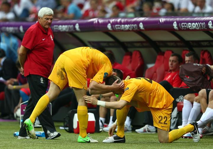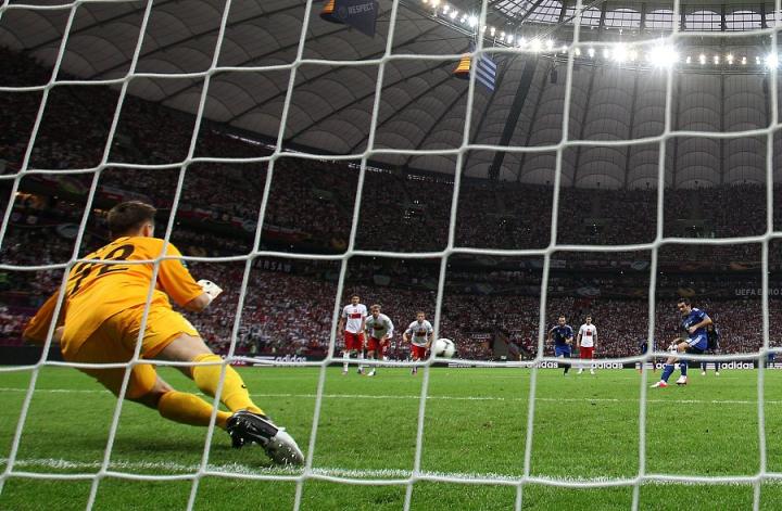 随即波兰队用替补门将泰顿换下里布斯。令人惊奇的是,卡拉古尼斯主罚的点球射向波兰球门右下角,替补上场的泰顿奋力将球封出,波兰队幸运地逃过一劫。