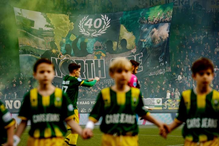 在跟俱乐部有关的一些纪念日,球场上也会出现一些相关的纪念Tifo。这张Tifo上印着“North Side 40 years”的字样,因为当天是海牙死忠球迷组织“北看台”成立40周年纪念日。他们曾经是一个以暴力著称的极端球迷组织,上世纪80年代海牙曾经因为他们的不当行为被勒令降级。现在虽然他们的名声依然不是很好,但是和过去相比已经友好多了。