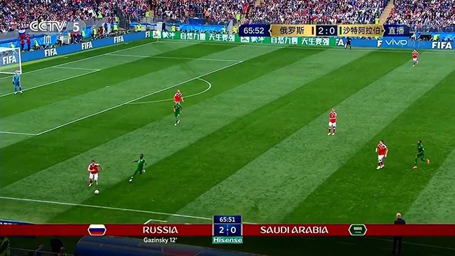 不同的是,海信的比分条露出植入在比赛官方信号里,vivo和蒙牛则植入在央视世界杯直播信号中。权益归属主体不同。