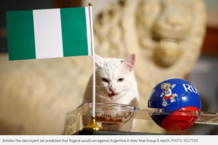很遗憾,此前预测比赛收获4连种的俄罗斯冬宫白猫阿喀琉斯为这场球做出了预测:尼日利亚战胜阿根廷。