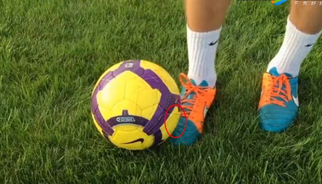 1、要找准触球部位:用脚外侧的脚趾根部靠近脚背的部位触球,记住,用你的惯用脚。(下图示范为左脚)