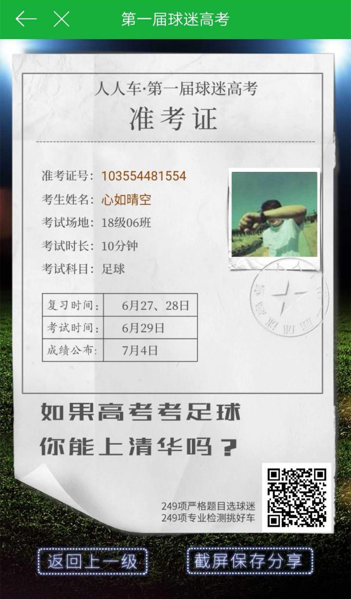 所以,请你带着这份对德国队的热爱继续爱世界杯,况且你现在手握一次亲临决赛现场的机会,就在6月29日,人人车“第一届球迷高考”开考:
