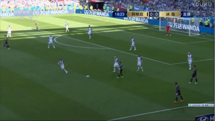 但冰岛尽管体系严整,战术思路简明而有效,但后防球员单防能力以及脚下频率不足的问题还是时有暴露。第一个球中我们明显可以看到,冰岛一旦后腰横向移动封阿根廷的纵向给球线路出现问题,中卫的个人能力就不足以在跟前锋的一对一中取得优势。