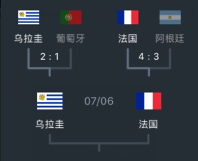 两场比赛结束后,法国和乌拉圭分别战胜阿根廷和葡萄牙晋级,他们会在1/4决赛中相遇,两队的胜者会晋级半决赛。