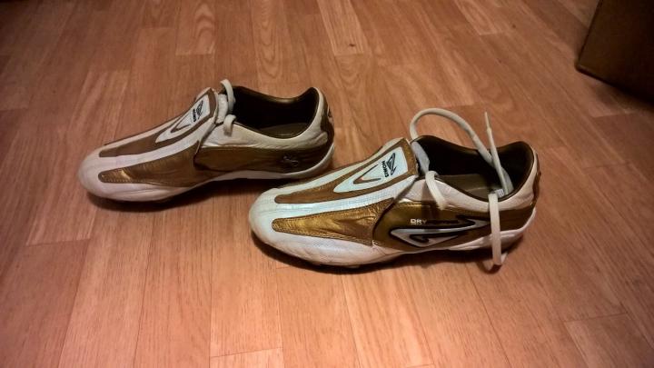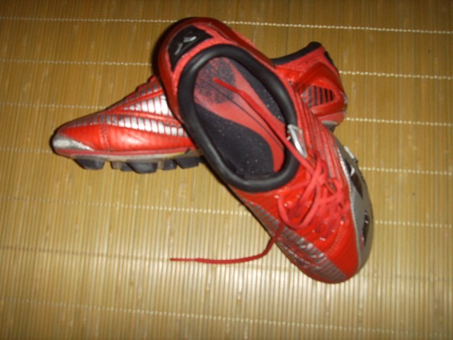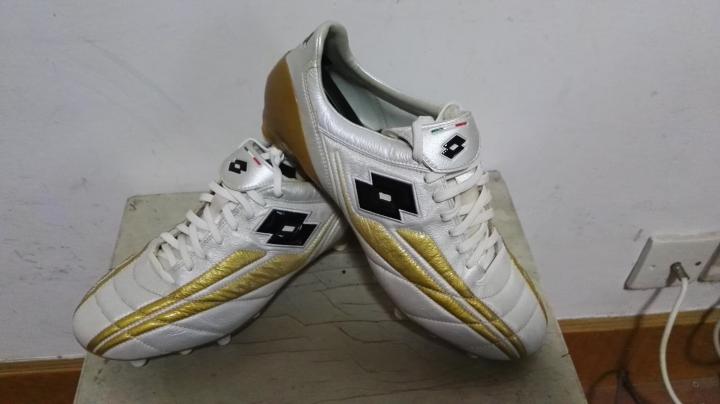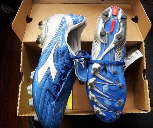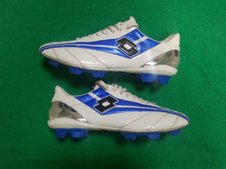 2005年的lotto最没战靴zhero plus,在2006年世界杯上也有球员用,卡莫拉内西就用过,还有澳大利亚门将舒瓦茨,这款鞋的鞋跟是银色克罗米的,所以特别亮。