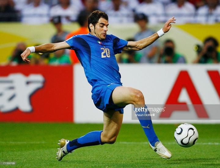 说了两个意大利品牌,下面我们来说一款小而强大的足球鞋,大家不知道听说么没有,这款鞋的俗称“左后卫”,因为2006年世界杯意大利左后卫格罗索得名,黄健翔的激情解说,火的不仅仅是格罗索,还有这双来自asics的tigreor足球鞋,其实2006年,asics除了在意甲,其他市场基本很少出现,但tigreor系列在当时还是比较受认可的一款鞋,基本就是一双简配的猎鹰。也有嵌入式摩擦条。格罗索在关键时刻,几次力挽狂澜,左后卫足球鞋也名闻天下。但实际上,在2006年世界杯上,使用这款鞋的好像只有三个人,除了格罗索,还有阿根廷的波尔蒂索,还有法国队的马卢达,但是马卢达的鞋子是红色的非市售版本。