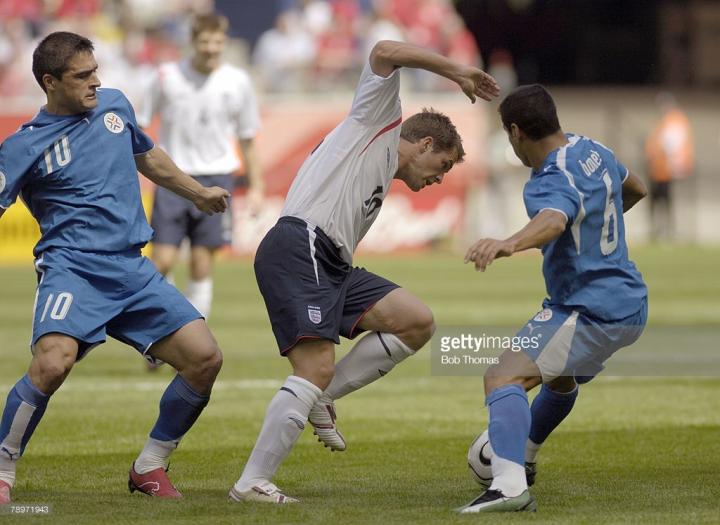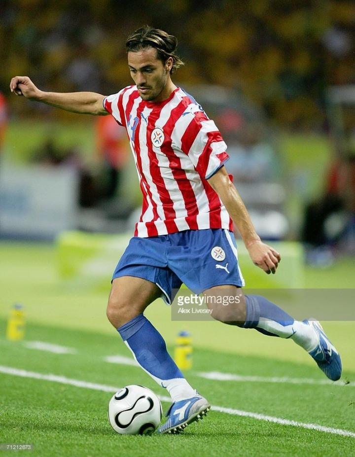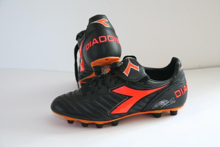 不过2006年世界杯上,有人居然也穿了黑红的diadora足球鞋,此人正是巴拉圭的帕雷德斯,他效力于意甲雷吉亚纳,所以使用diadora也不奇怪。他使用的brasil是2004年以后的款式,鞋舌是原型,但黑红配色绝对是非常罕见的配色。还有捷克队的格里格拉,使用鞋和帕雷德斯是同款,但颜色比较正常,是常见的黑黄色brasil。