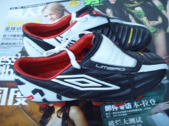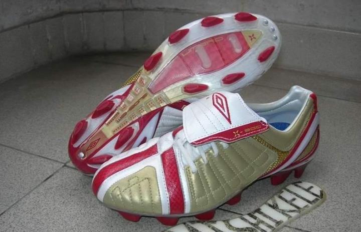 umbro使用最多的一款鞋,是德科代言的x revolution一代,红银配色,这款鞋的外观确实非常好看,这也是我在玩鞋之初买的第一款足球鞋。西班牙的路易斯加西亚,瑞典门将伊萨克松,还有科特迪瓦的6号库西瓦,穿的都是这款鞋。