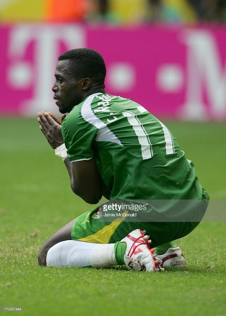 另一个在2002年出道的品牌aline,在2006年世界杯上,也出现一个独苗,来自多哥队的默罕默德,他使用的是一双白红色的aline袋鼠皮足球鞋。