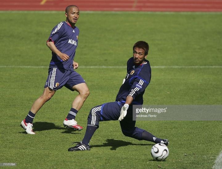 当然,asics作为日本品牌,在日本队也有开枝散叶,日本门将川口能活常年是asics的代言人,他的专属款足球鞋叫janus,2006年世界杯,他穿的是一款白红色的asics janus足球鞋。