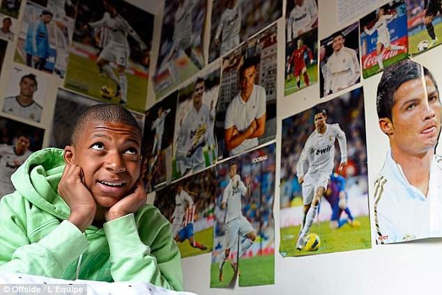 (姆巴佩曾经是C罗的“迷弟”,卧室墙上贴满了C罗的海报)