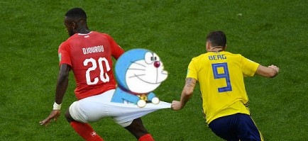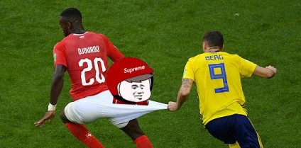 眼看着瑞士队攻势一阵阵,瑞典人坐不住了,他们只好放出了绿茵场上的防守绝技——扯裤子,这也几乎承包了整场比赛的笑点。
