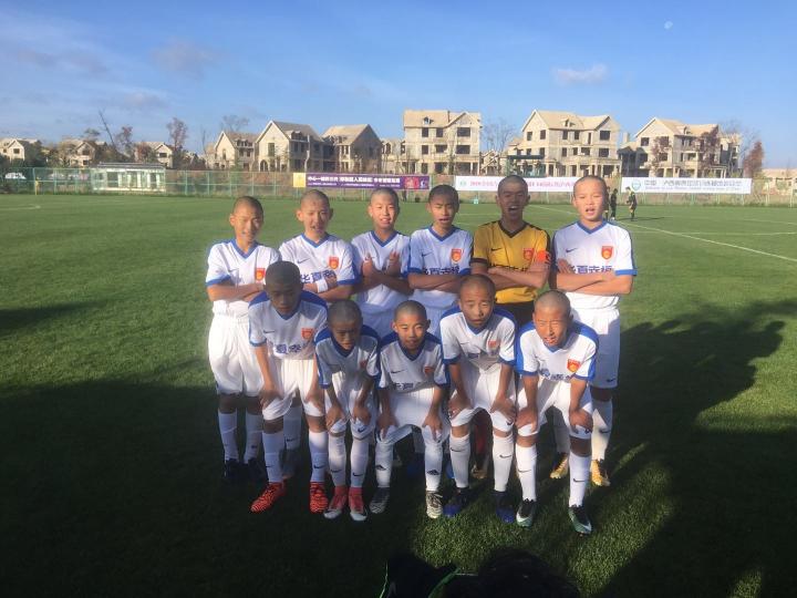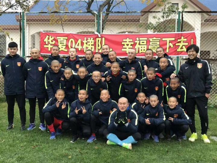 在今年全国锦标赛的第一场比赛中,U14梯队由于是第一次登上全国比赛的舞台,表现有些紧张,首场比赛没有发挥出正常水平,0-0与对手战平。赛后,教练组勉励球员们放下思想包袱,一切从头做起。同时,教练组也希望球员们可以削发明志,力争后两场小组赛取得全胜。就这样,在第二场比赛中,“幸福少林足球队”诞生了。
