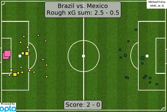 (巴西和墨西哥的预期进球数之比为2.5:0.5,这很好地说明了场上的结果)