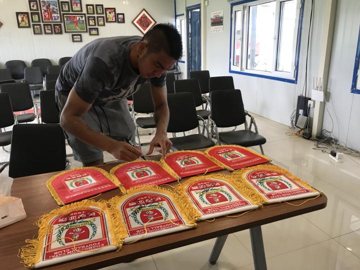 临别前,伊斯梅洛夫在俱乐部准备好的队旗上签名。