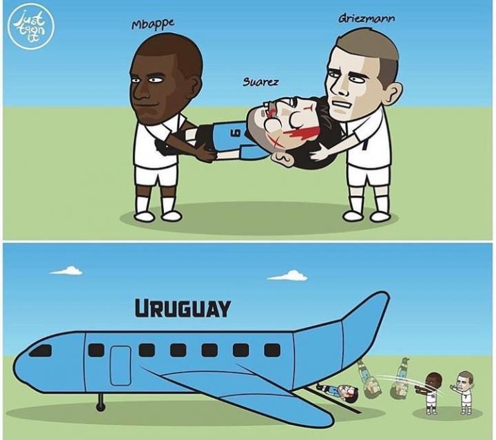 乌拉圭对阵法国,凭借格列兹曼任意球助攻瓦拉内头球攻门得手,法国队上半场1-0领先;下半场格列兹曼远射造乌拉圭门将穆斯莱拉黄油手失误破门,法国队最终2-0获胜挺进四强。