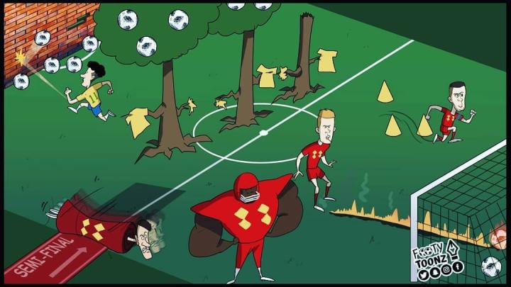 比利时2比1力擒巴西,继1986年之后第2次打进世界杯4强。上半时,蒂亚戈-席尔瓦中柱,费尔南迪尼奥自摆乌龙,德布劳内远射扩大比分。下半场,库蒂尼奥助攻替补出场的中超外援奥古斯托扳回一分。