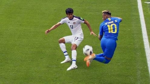 巴西人崇尚快乐足球,内马尔将这一DNA演绎到了极致。在小组赛对阵哥斯达黎加伤停补时阶段,哥斯达黎加人为了扳平比分而心急火燎。此时已经领先并放松心情的内马尔,来了个漂亮的彩虹过人。