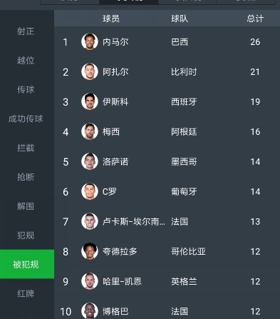 (内马尔被犯规次数真是“独领风骚”)
