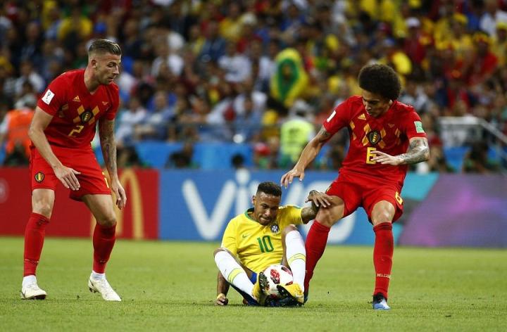 (与比利时一战,内马尔被侵犯次数并不在少,但他再也不打滚,每一球都力拼到底)
