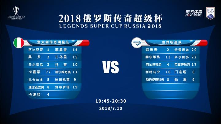 虽然意大利国家队无缘2018世界杯,但是他们的传奇明星队派出了多名巨星参加2018俄罗斯传奇超级杯,托蒂、马尔蒂尼、阿比亚蒂、赞布罗塔、奥多这些昔日名将都将会参赛!