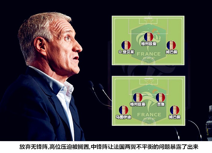 卢卡斯-埃尔南德斯和帕瓦尔的上位固然提升了两闸的防守稳定性,但两名在俱乐部多数时间内司职中卫的球员,在持球进攻时明显缺乏想象力和球路变化。由于双中卫乌姆蒂蒂和瓦拉内风格趋同,德尚有意安排身体素质出众的卢卡斯-埃尔南德斯更多地横移保护中路,他已经很难像热身赛对阵意大利时那样持球碾压至对手的禁区内。就像欧洲杯时一样,更换了两闸的法国在进攻端依赖于前场球员,吉鲁取代奥斯曼-登贝莱构建中锋阵的立体攻势,这等于是放大了边后卫助攻能力不足的缺陷。